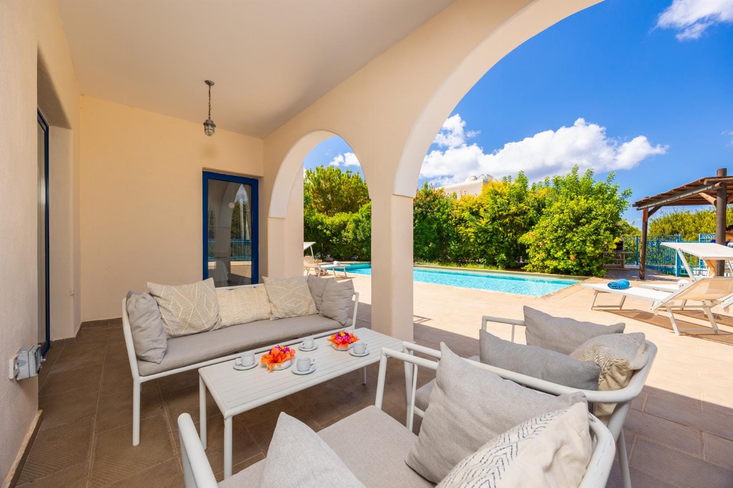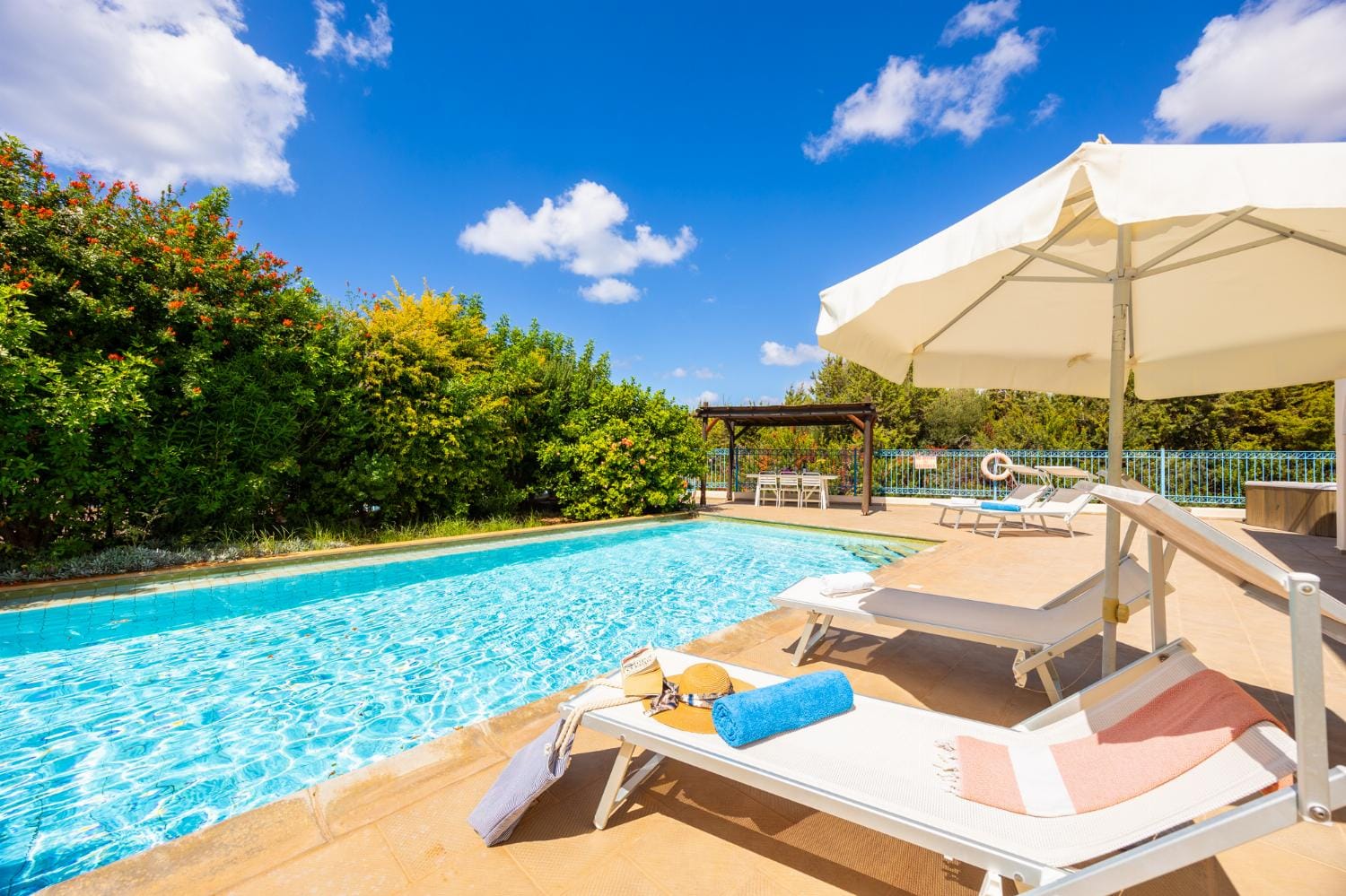Poseidonas is one of the Azzurro Luxury Villas, providing high quality accommodation and all the conveniences you could have hoped for. A lovely swimming pool, spacious area outdoors with comfy furniture for relaxation and rejuvenation complete the setting. You can enjoy the traditional style of the Mediterranean, blended with touches of modernity and vivid colors. Families, friends and couples may all experience superb holiday moments in Cyprus, with splendid accessibility to picturesque taverns and a scenic beach. The villa can accommodate up to 6 persons, with luxury facilities and amenities.